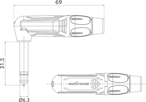 Mono 2 pole 6.3mm right angle plug
