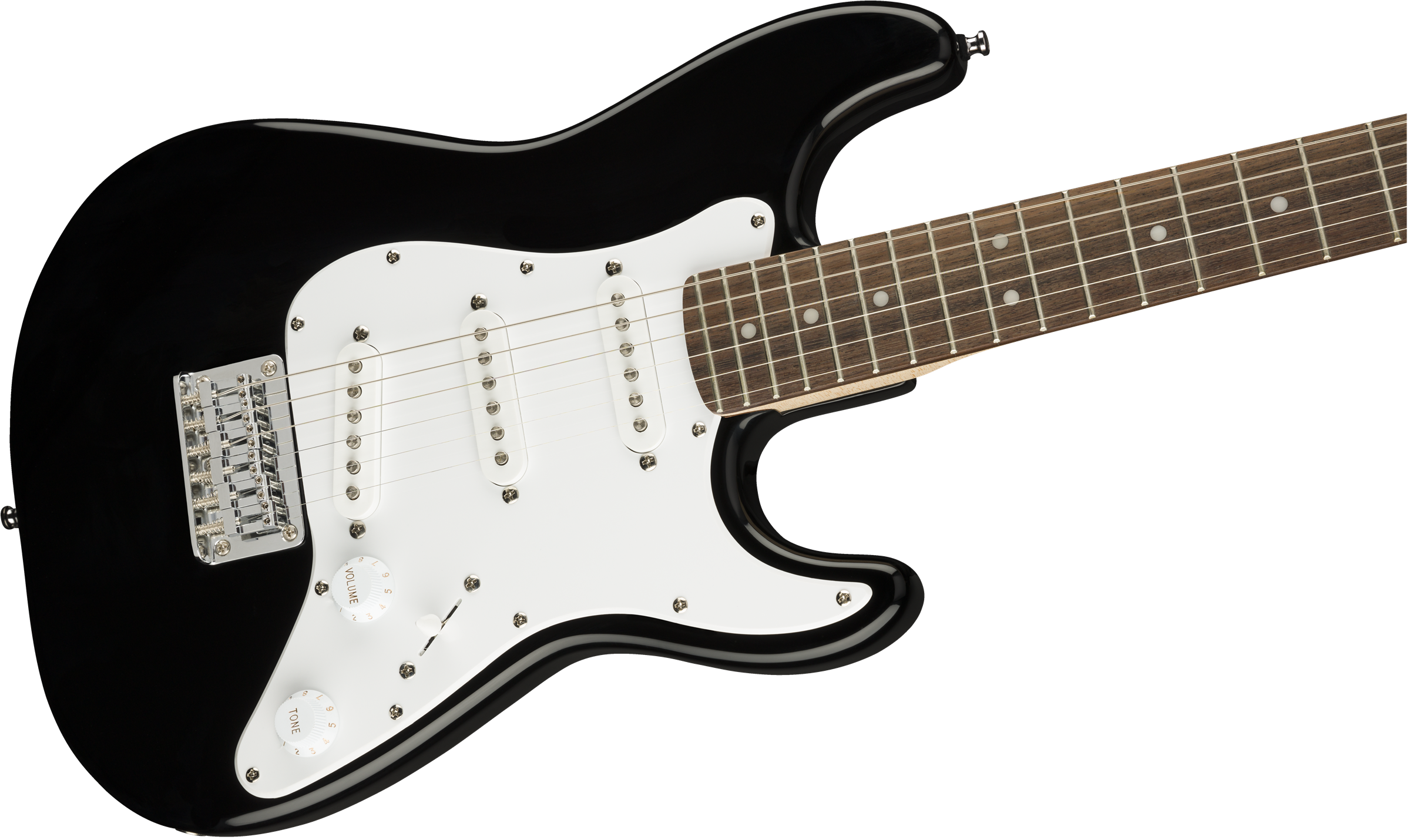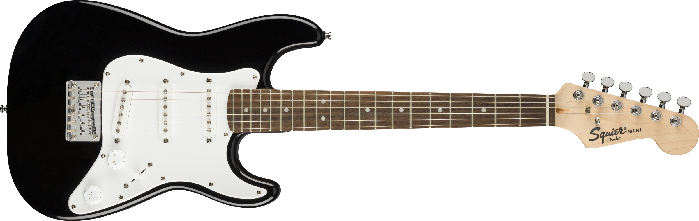 Mini Stratocaster, Laurel Fingerboard, White Pickguard, Black